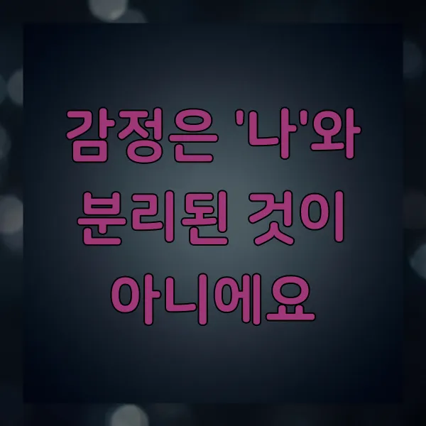 우선, 우리가 느끼는 감정이 마치 외부에서 온 것처럼 생각하는 경우가 많거든요. "오늘 기분이 왜 이래?" 하고 남 탓을 하거나, 어떤 상황 때문에 감정이 생긴다고만 여기죠. 하지만 사실 감정은 우리의 생각, 신념, 과거 경험 등이 복합적으로 작용한 결과물이에요. 즉, 감정은 '나'라는 존재의 일부라는 뜻이죠.