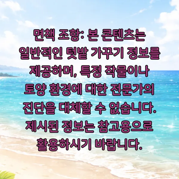 면책 조항: 본 콘텐츠는 일반적인 텃밭 가꾸기 정보를 제공하며, 특정 작물이나 토양 환경에 대한 전문가의 진단을 대체할 수 없습니다. 제시된 정보는 참고용으로 활용하시기 바랍니다.