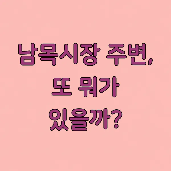 물론 앞서 소개한 식당들 외에도 남목시장 주변으로는 로컬 맛집들이 더 있을 수 있어요. 시장을 둘러보다 보면 정겨운 분위기 속에서 예상치 못한 보물 같은 식당을 발견할 수도 있거든요. 식당 이름이나 메뉴가 좀 생소하더라도, 사람이 많은 곳이라면 한번 도전해 보는 것도 재미있겠죠.
